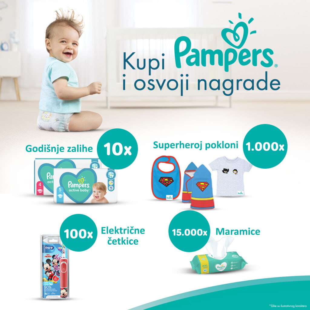 Kupovinom Pampers proizvoda u minimalnom iznosu od 25 KM, na info pultu preuzimite vašu grebalicu i osvojite jednu od vrijednih nagrada.