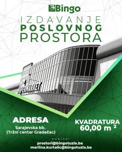 Društvo „Bingo“ d.o.o. export-import Tuzla sa sjedištem u Tuzli na adresi Bosanska poljana bb raspisuje oglas
