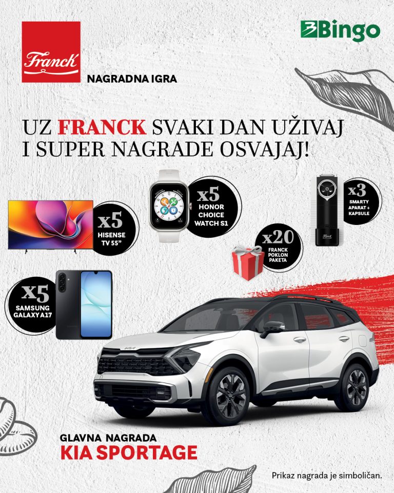 Izvučeni su dobitnici nagradne igre “UZ FRANCK SVAKI DAN UŽIVAJ I SUPER NAGRADE OSVAJAJ!”.