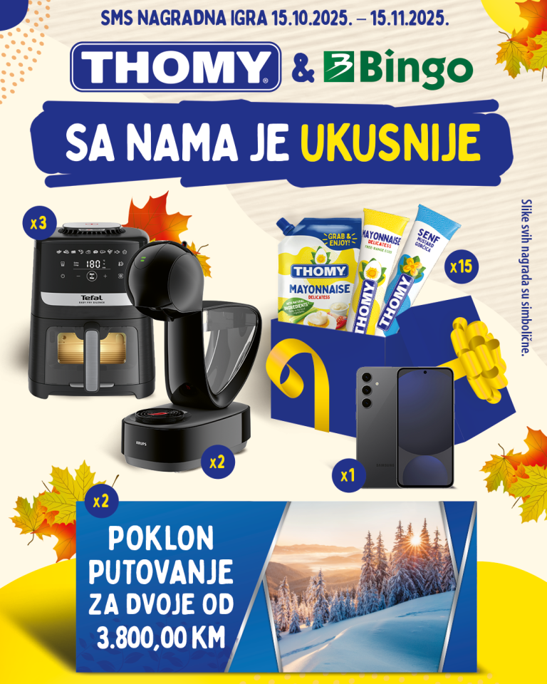 Izvučeni su dobitnici nagradne igre „THOMY & BINGO – sa nama je ukusnije!“. Čestitamo svim sretnim dobitnicima! U nastavku pogledajte spisak dobitnika:
