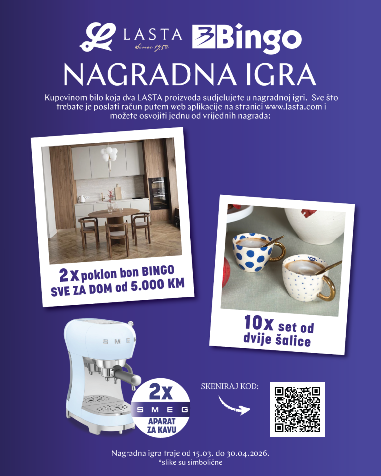 Kupovinom jednog ili više AG Frigo, Siviero Maria i Monte proizvoda ostvaruješ pravo na učešće u nagradnoj igri i možeš osvojiti jednu od vrijednih nagrada. Sačuvaj račun i pošalji SMS sa brojem računa na broj 091/210-003. Nagradna igra traje od 15.5. do 15.8.2025. Izvlačenje dobitnika je 16.8.2025. U nastavku pogledajte