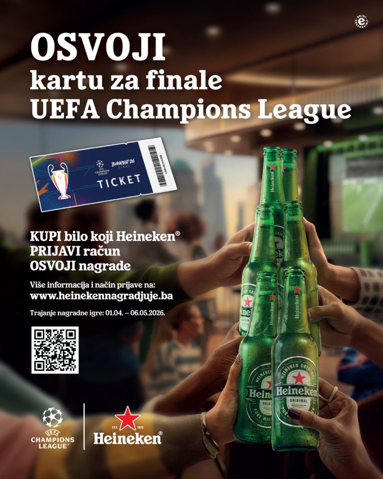 Osvoji kartu za finale UEFA Champions League! Kupi bilo koji Heineken, prijavi račun i osvoji nagrade. Više informacija i način prijave potraži na www.heinekennagradjuje.ba Nagradna igra traje od 1. 4. do 6. 5. Pravilnik nagradne igre nalazi se u nastavku.