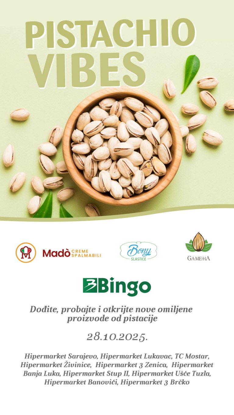 Zajedno sa našim partnerima pripremili smo promocije proizvoda od pistacije koji će vas osvojiti na prvi zalogaj. Dođite, probajte i otkrijte nove omiljene proizvode od